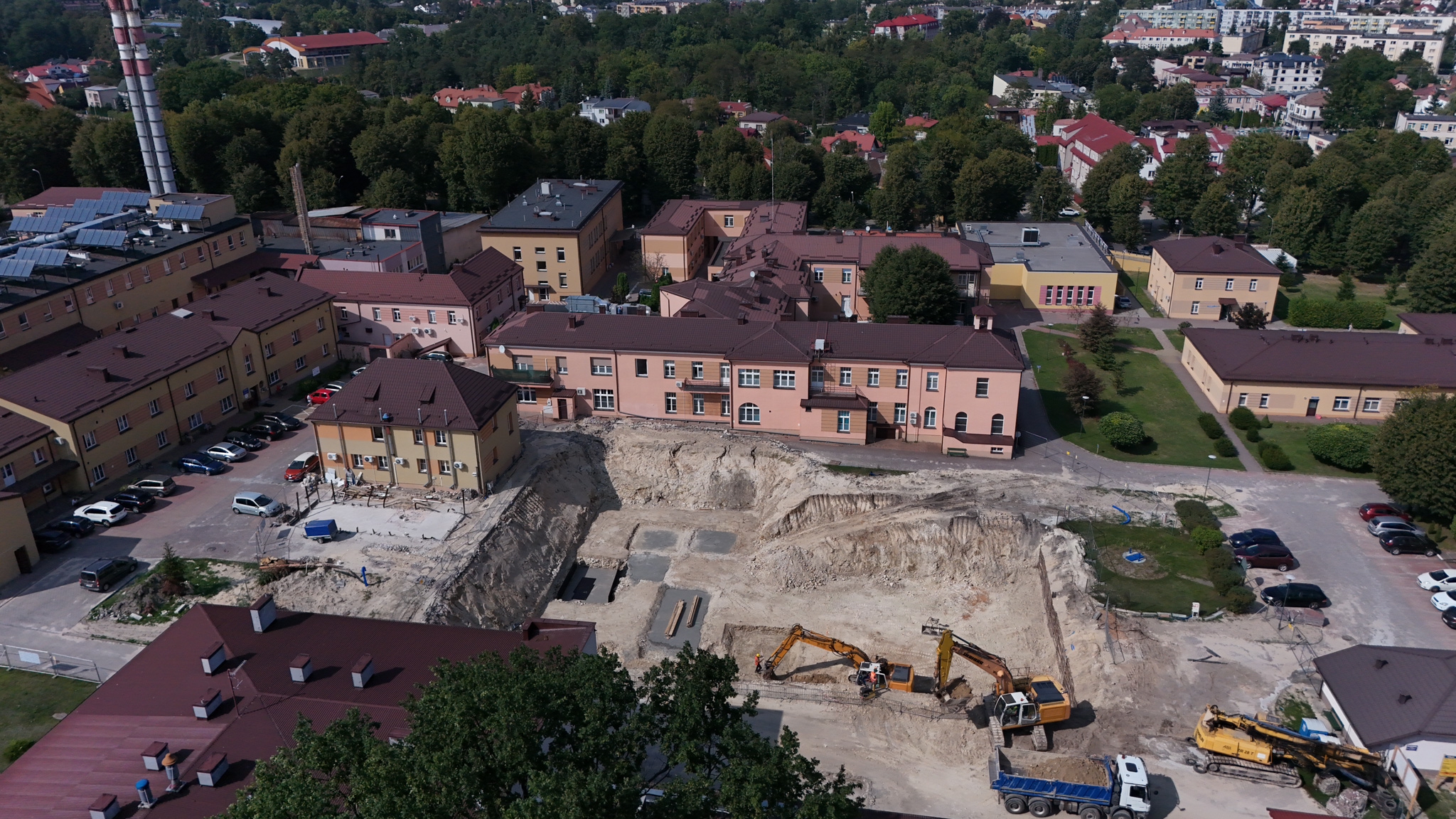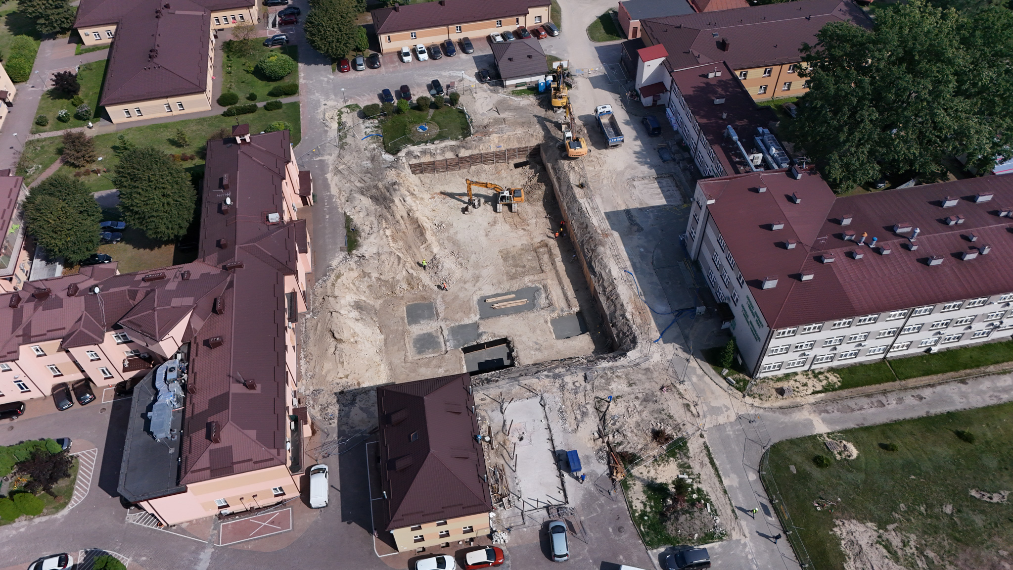 Roboty ziemne dotyczące budowy Centralnego Bloku Operacyjnego dobiegają końca - fotorelacja.