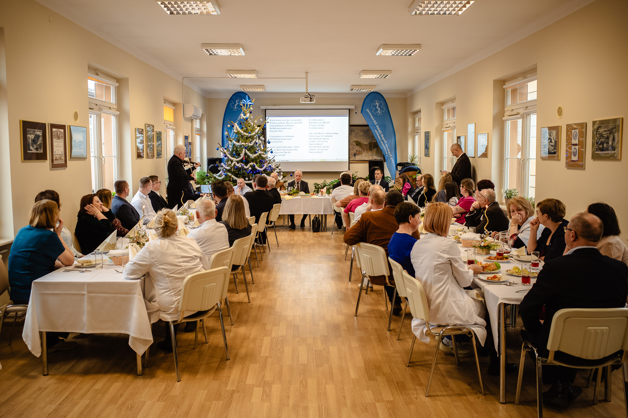 W serdecznej i miłej atmosferze w dniu 23.12.2024r. odbyło się tradycyjne spotkanie opłatkowe w naszym Szpitalu. Pracownicy oraz zaproszeni goście spotkali się, aby podzielić się opłatkiem, złożyć sobie świąteczne życzenia i wspólnie kolędować. Chwila refleksji pozwoliła oderwać się od codziennej pracy oraz obowiązków dnia codziennego.