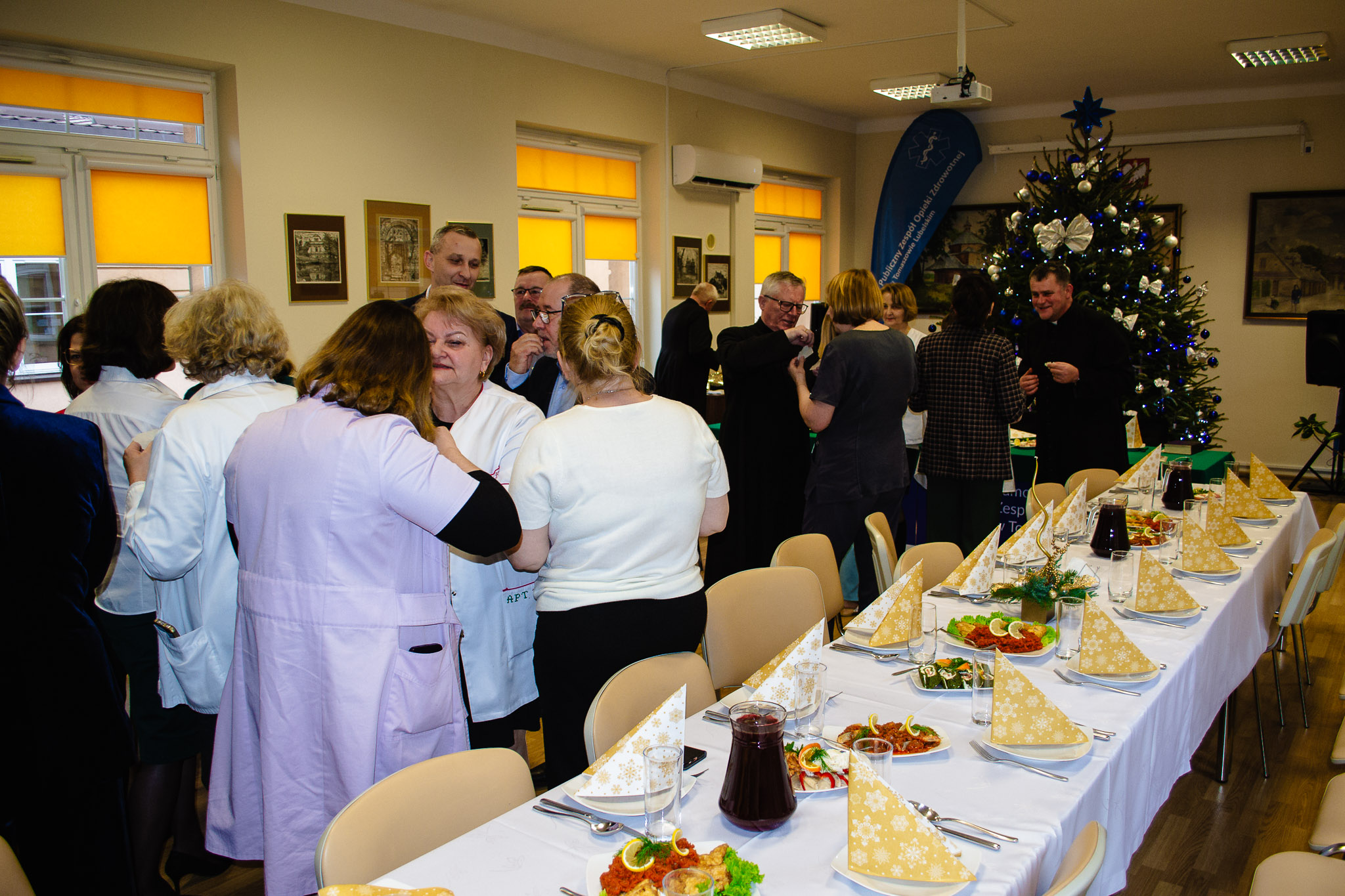 Spotkanie było czasem wspólnej modlitwy, poświęcenia opłatków oraz składania serdecznych życzeń świątecznych. Stało się również okazją do wyrażenia głębokiej wdzięczności wszystkim pracownikom Szpitala za ich codzienną, pełną poświęcenia służbę na rzecz pacjentów oraz troskę o drugiego człowieka.