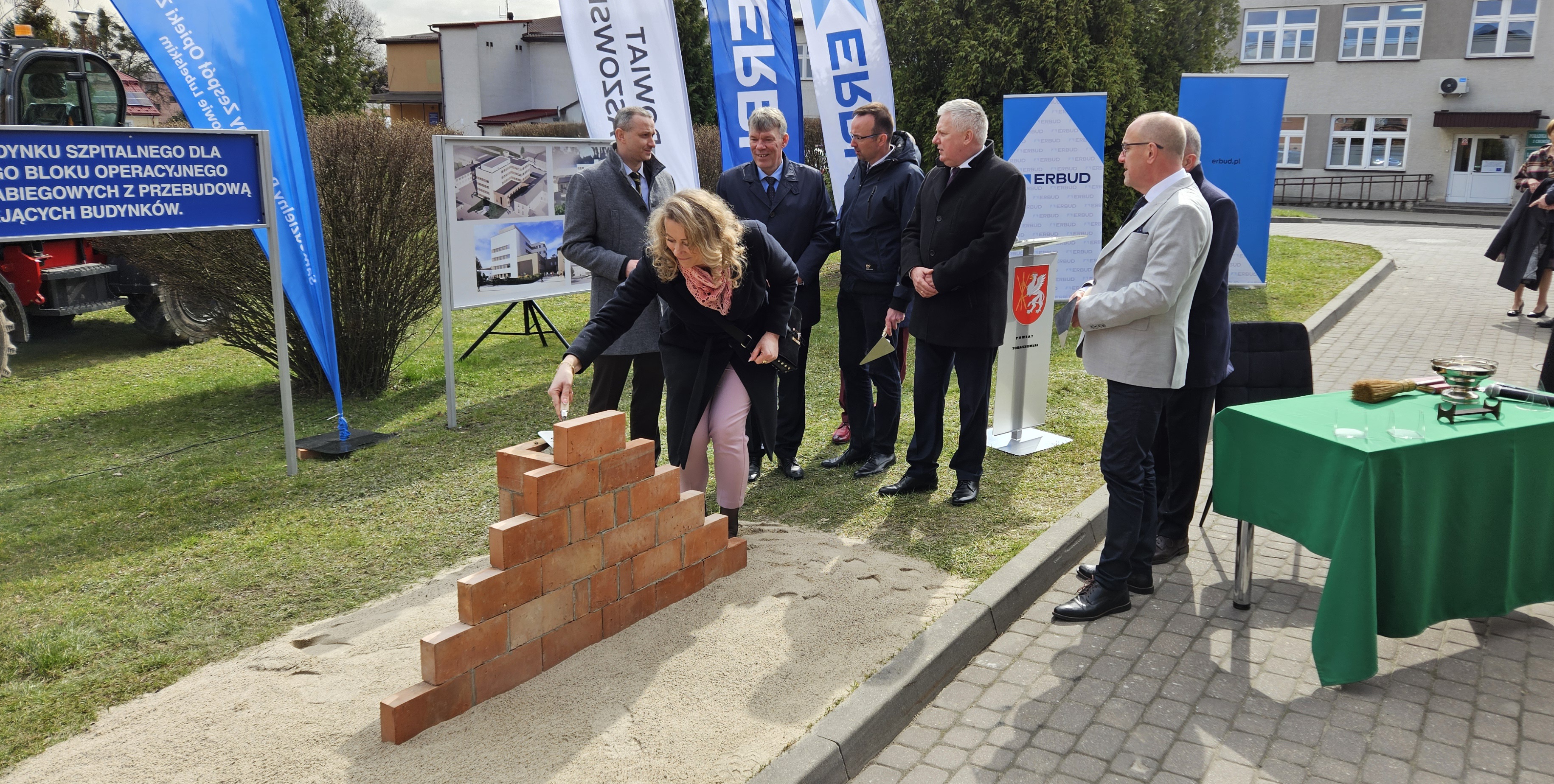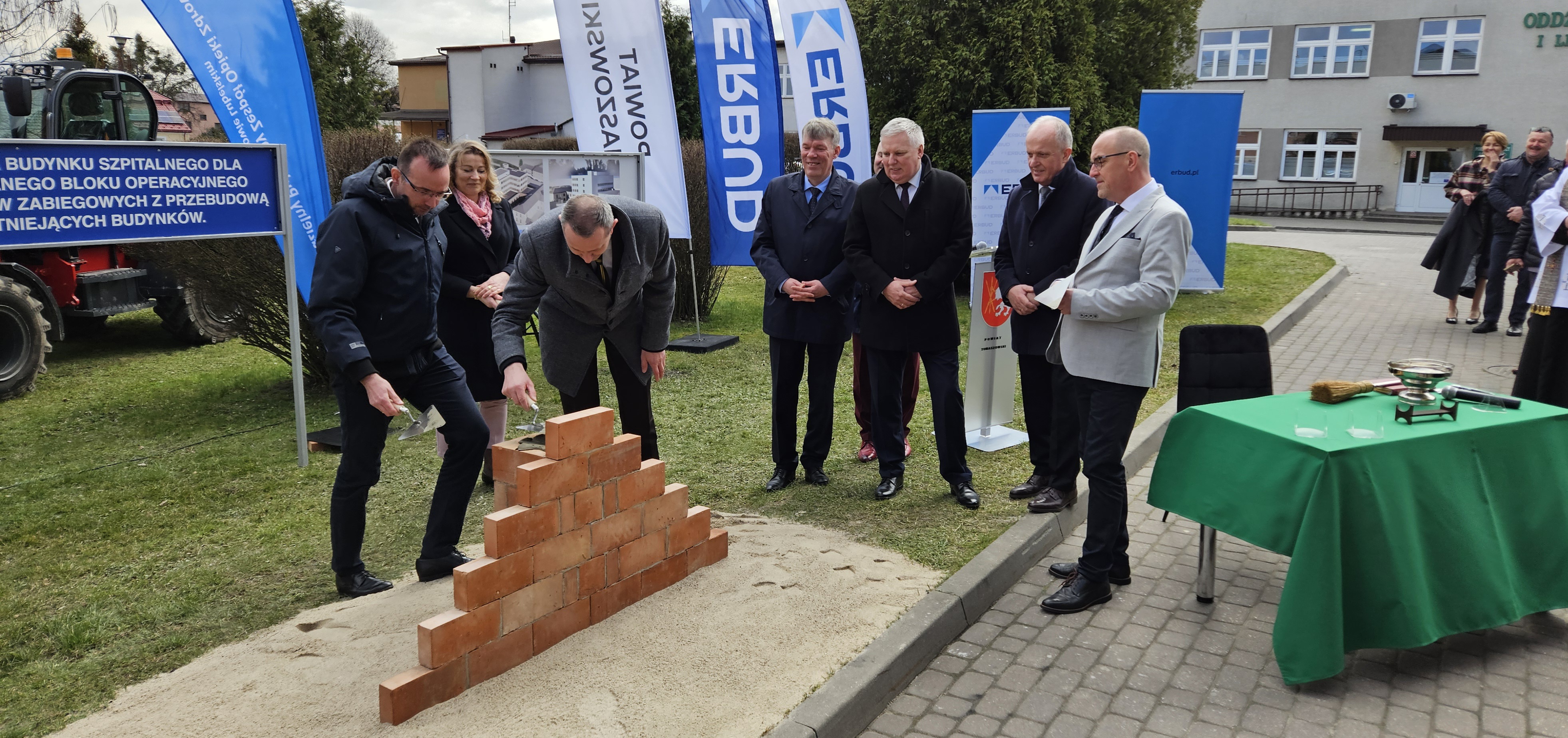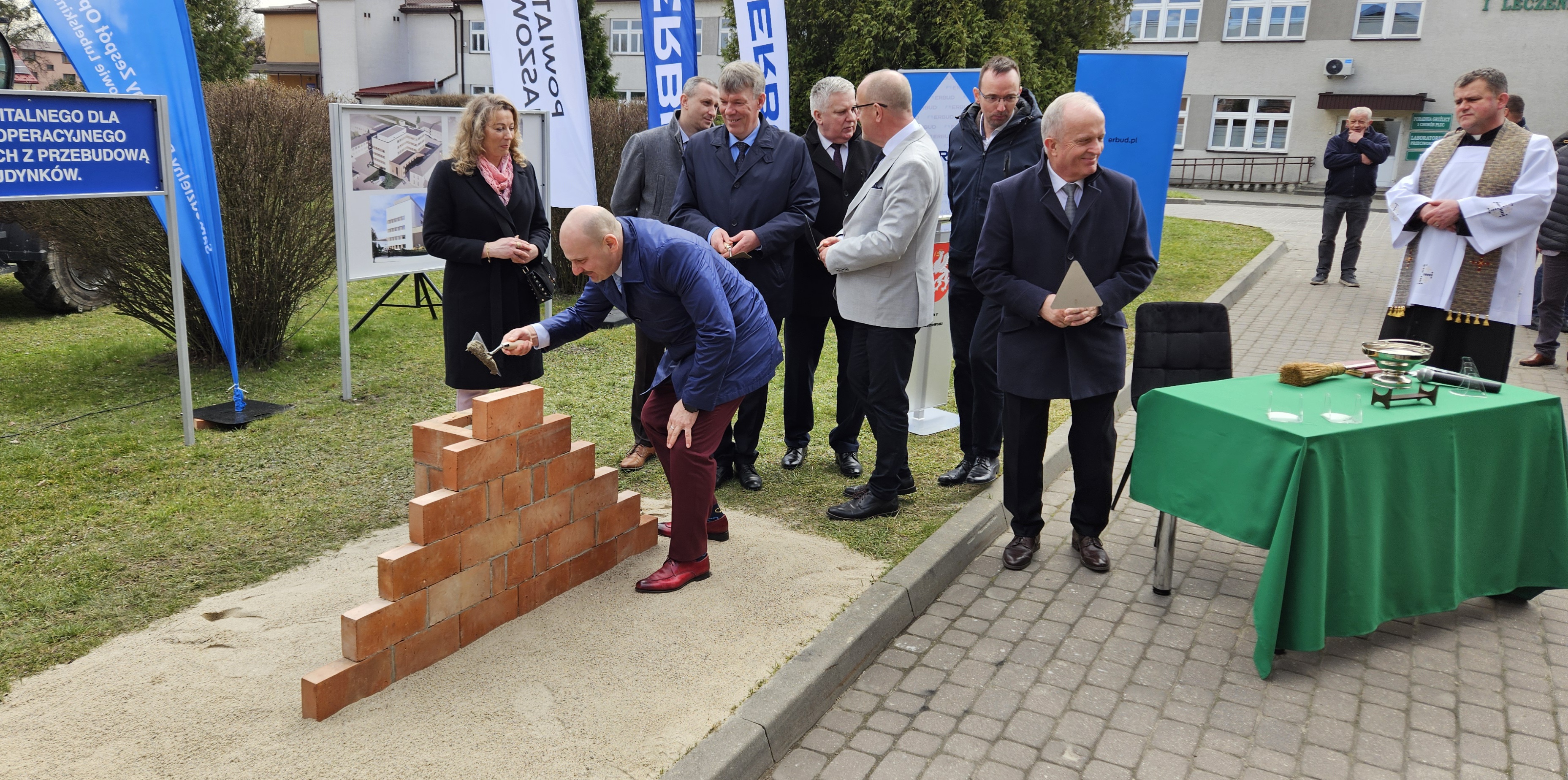 W dniu dzisiejszym wmurowano Kamień Węgielny pod „Budowę budynku szpitalnego dla centralnego bloku operacyjnego i oddziałów zabiegowych z przebudową istniejących budynków”.