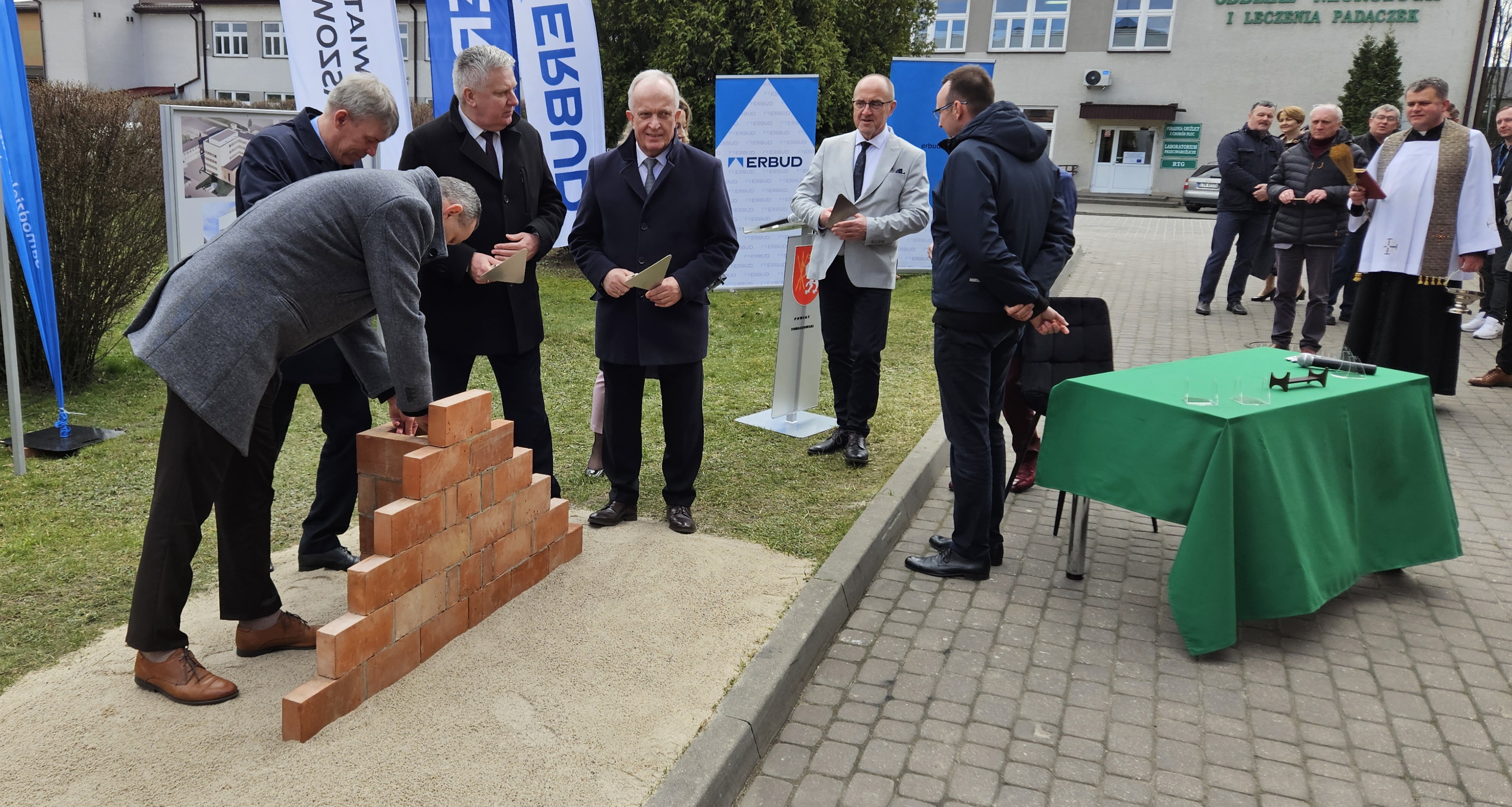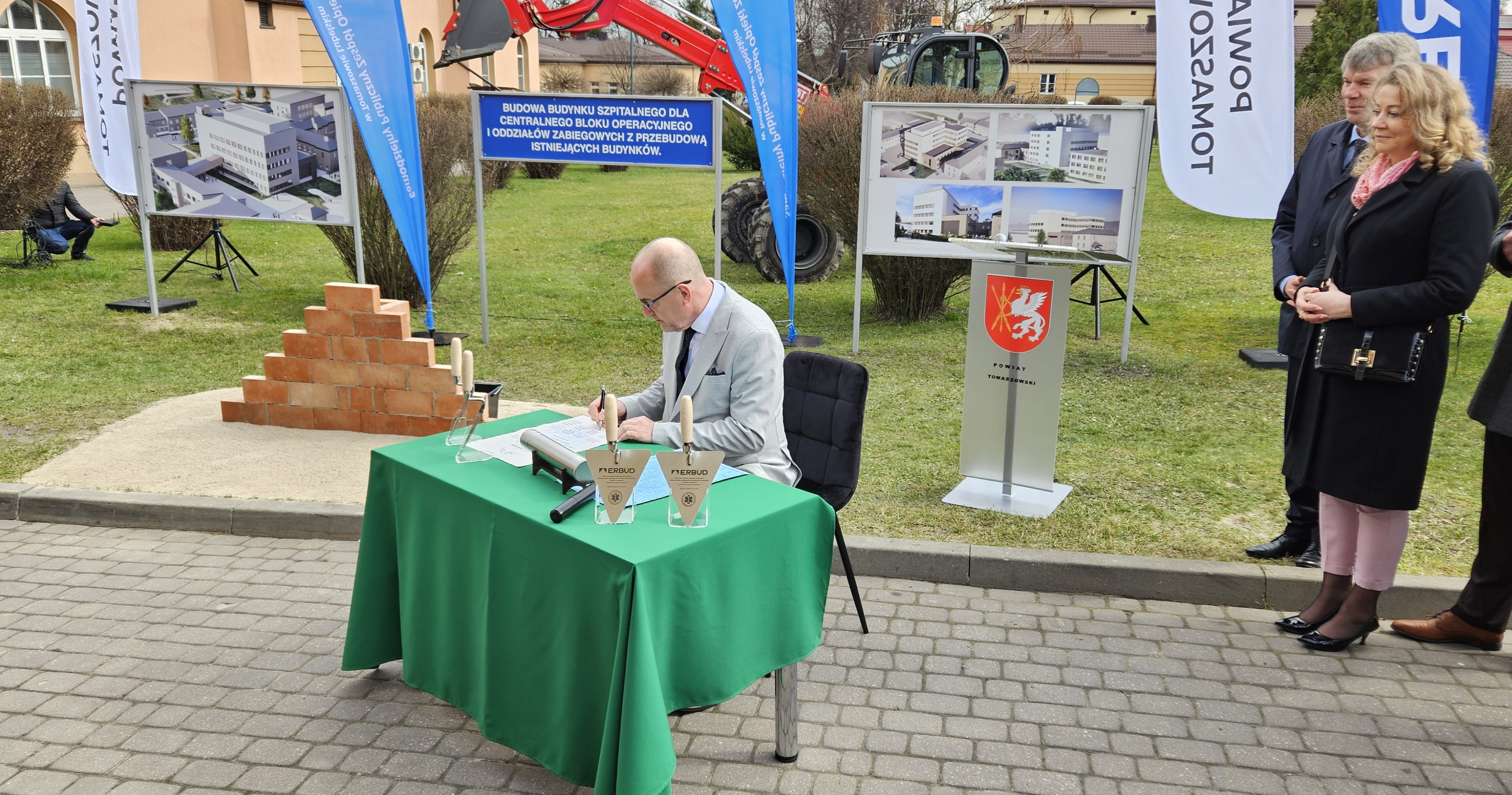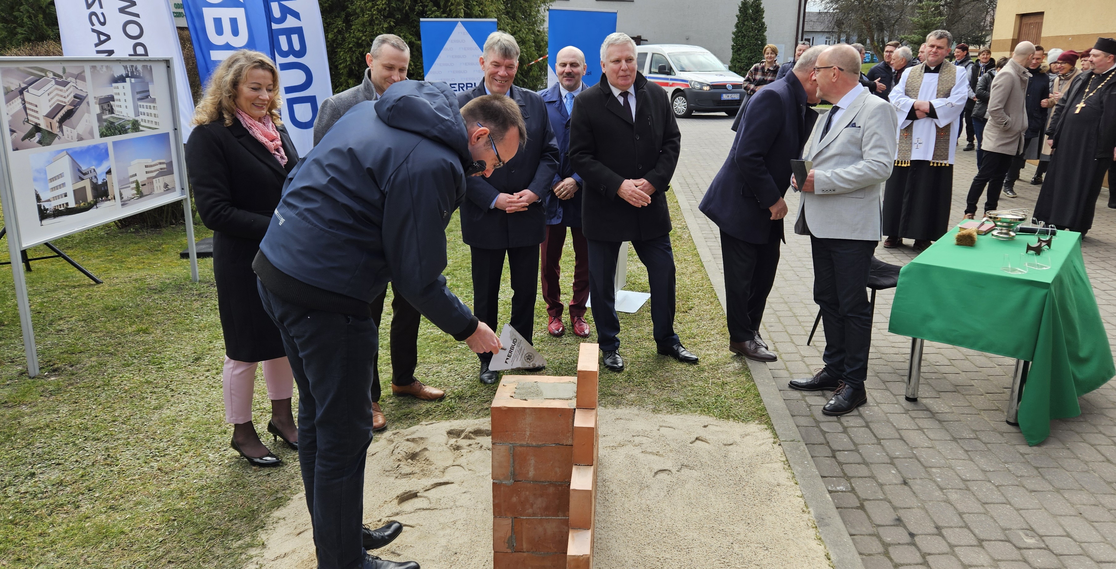 W dniu dzisiejszym wmurowano Kamień Węgielny pod „Budowę budynku szpitalnego dla centralnego bloku operacyjnego i oddziałów zabiegowych z przebudową istniejących budynków”.